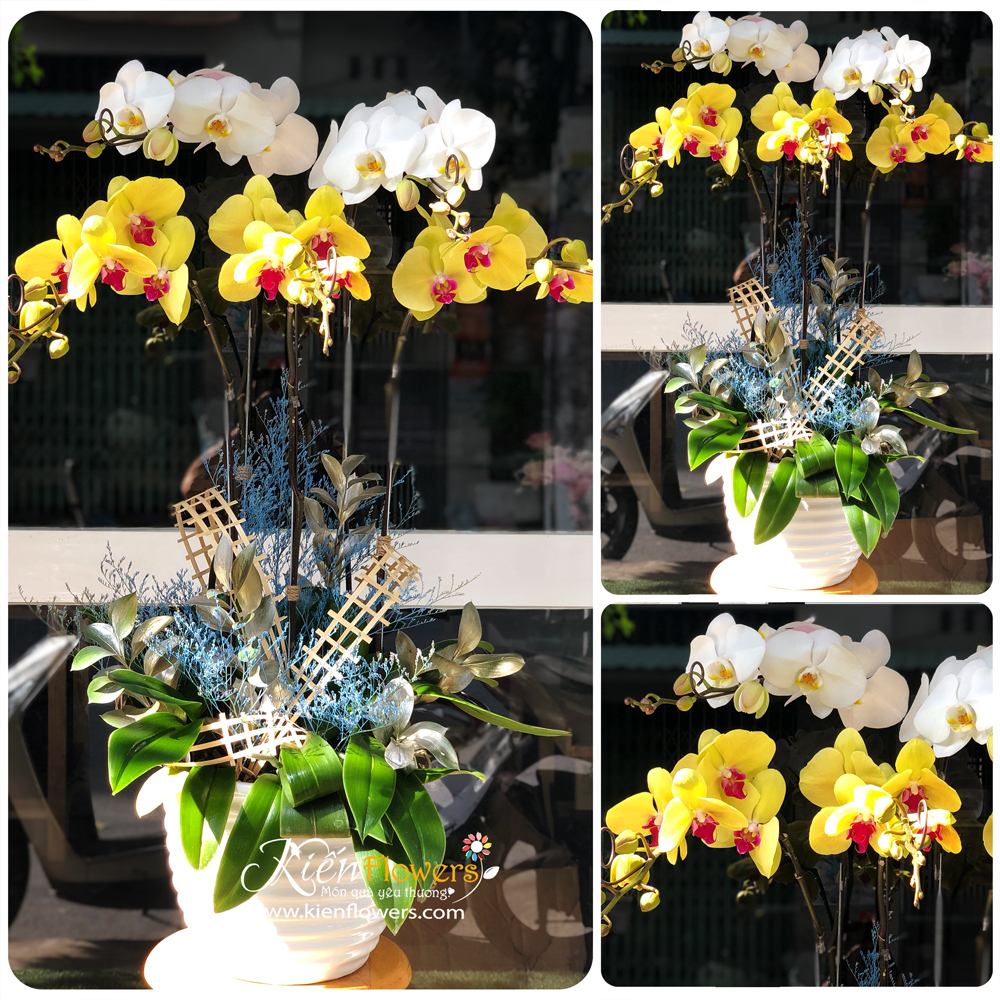Lan hồ điệp trắng, vàng (5 gốc).